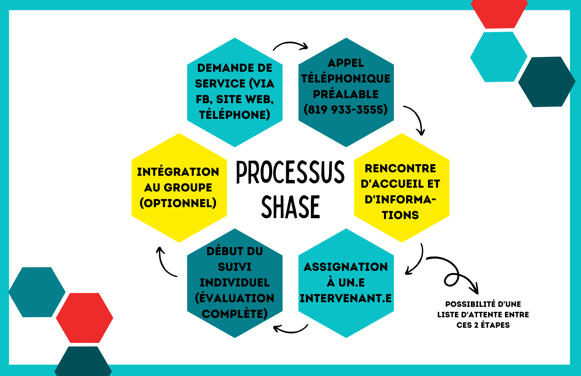 Un premier appel sera fait avec l’intervenant.e en charge de l’accueil et de l’orientation des dossiers au SHASE. Cet appel a pour but d’ouvrir un dossier client (nom, date de naissance et coordonnées), ainsi que de faire une évaluation sommaire de votre situation actuelle. Ensuite, nous vous proposerons une date rapprochée pour une rencontre d’accueil. À moins que le déplacement ne soit impossible, il vous sera demandé de venir dans les locaux du SHASE pour ce premier entretien. Nous vous indiquerons notre localisation et les informations nécessaires (stationnement et porte) pour bien vous y retrouver.